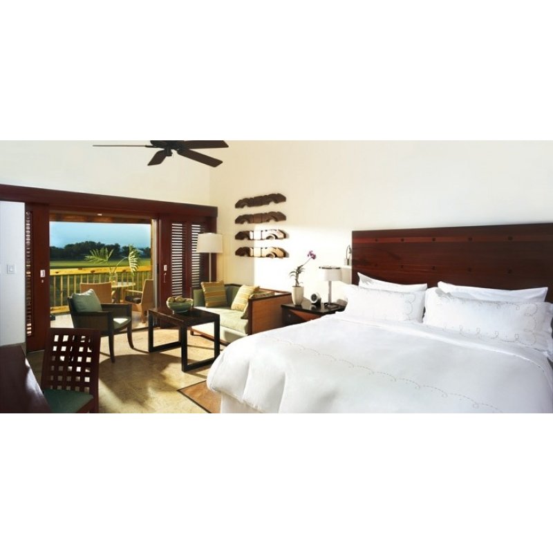 L'ensemble abrite 185 chambres dans plusieurs bâtiments disséminés au cœur d'un vaste jardin tropical comprenant notamment des arbres du voyageur et de nombreux étangs. Toutes sont équipées de climatisation individuelle doublée d'un ventilateur, de télévision par satellite à écran plat, téléphone avec connexion Internet wifi haut débit (12 $/jour) station Ipod/Iphone et d'un frigo mini-bar avec des facilités pour le thé et le café. Vous disposerez d'un dressing comprenant un coffre-fort, une planche et un fer à repasser, des peignoirs et des chaussons. La terrasse ou balcon avec vue sur le golf et la mer. Spacieuse, la salle de bains comprend une vaste douche tropicale, un bidet, un sèche-cheveux, un miroir grossissant.